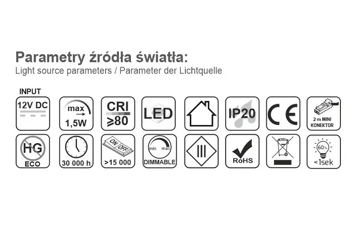 | Długość przewodu | 2 mb, przewód zakończony wtyczką MINI-KONEKTOR |